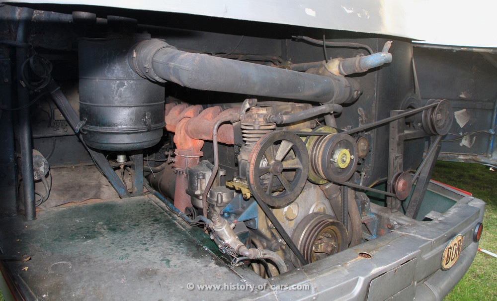 Dieses Fahrzeug besitzt einen Motor des Typs "Schönebecker" mit 10l Hubraum und 185PS, 28l/100km.